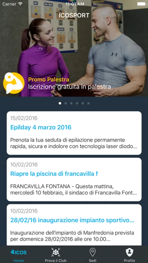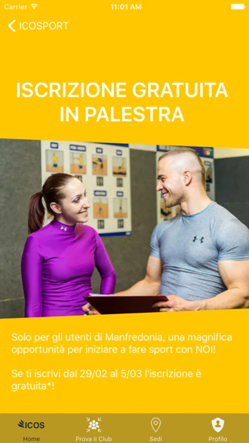 Descrizione "Club sportivo d'eccellenza con 11 impianti natatori, palestre con ampia scelta di corsi e centri benessere in tutto il territorio pugliese. Se sei un Icos lover rimani collegato a noi anche fuori e allenati dove vuoi. Promozioni e possibilità di piani di allenamento personalizzati"