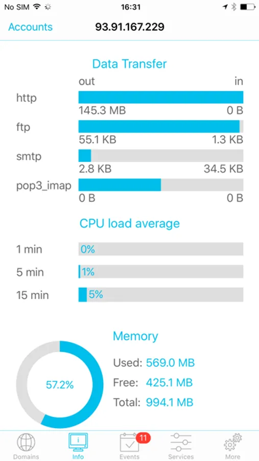 * View server health: CPU load average, memory consumption, swap usage, etc