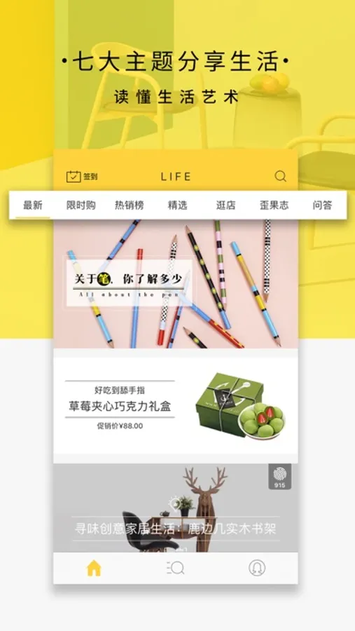 LIFE美好生活指南,坚持带来理想品质生活,成为你的“家居生活改造家”。在这里除了有各种「超值」的家居美物,还有你每个生活片段的「必需品」,更有买手/达人与你分享轻奢生活与好物图鉴,你还可以随时随处自建个性化的「LIFE清单」,收藏与分享达人优质清单。如果你曾憧憬被家居良品环抱的轻奢生活,那么LIFE美好生活指南就是你的“可终身相伴的家居良品集”。