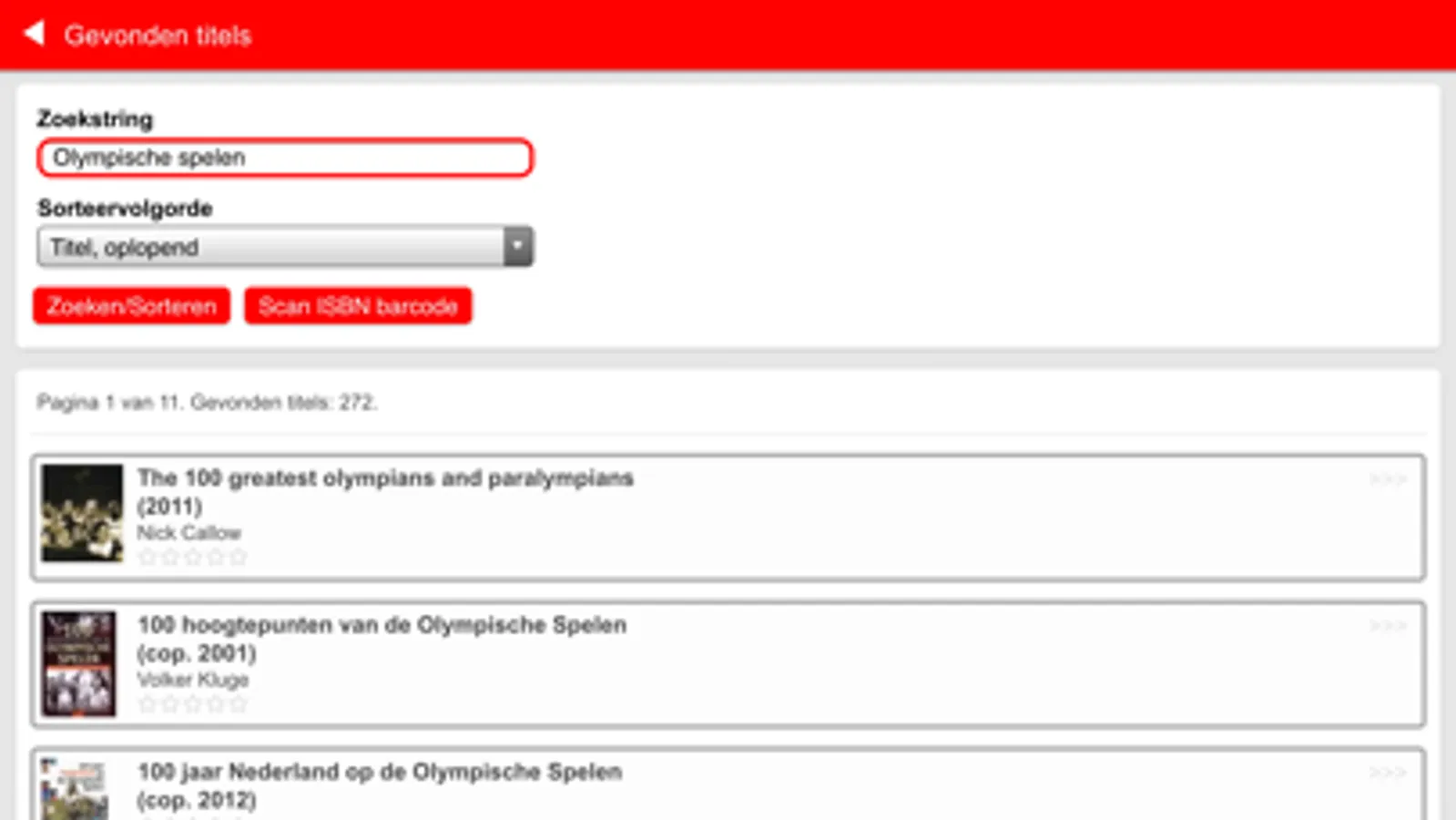 - zoekresultaten gesorteerd op titel, auteur of jaar