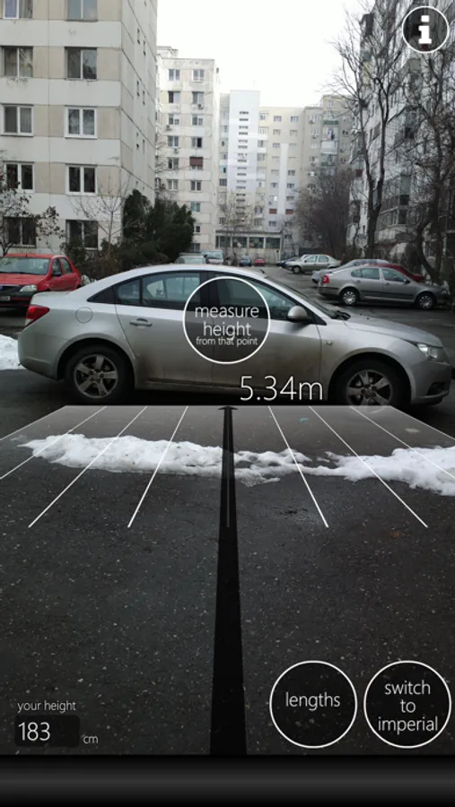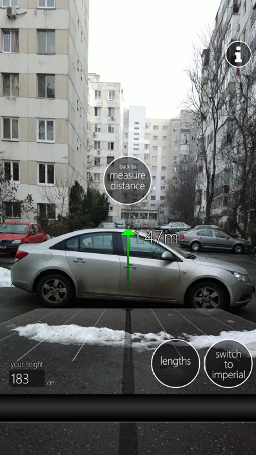 -measure distances and heights with augmented reality; point your camera on the ground on how far you want to measure, and from that point you can also measure heights; make sure you enter your height and hold your phone at shoulder level for best results