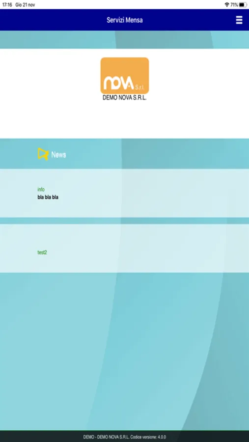 Nota: alcune funzionalità (ad esempio: pagamenti, visualizzazione menù e utilizzo centralino) dipendono dalla configurazione impostata dal Comune e/o dalla ditta di ristorazione.