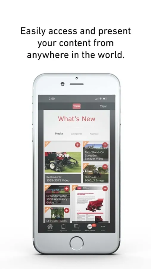 The Toro Advantage App is meant for Toro’s International personnel and channel partners, it is not for use by the public. The Toro Advantage App allows you to access Toro’s marketing and digital assets. You can quickly access brochures, spec & sell sheets, videos, microsites, photography and training information.