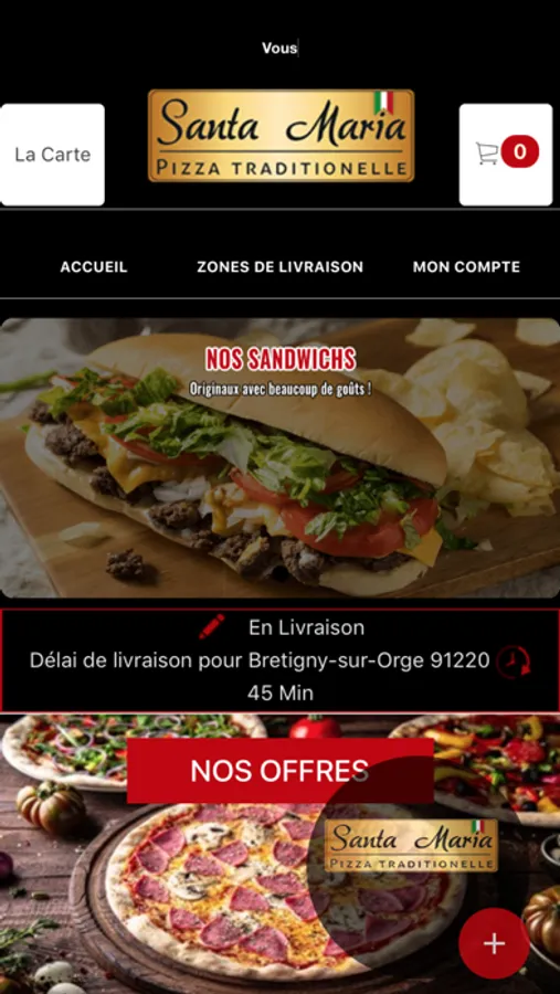 L'application Santa Maria vous permet de commander en ligne ou par téléphone via votre application . Vous pouvez consulter notre carte et choisir vos produits.