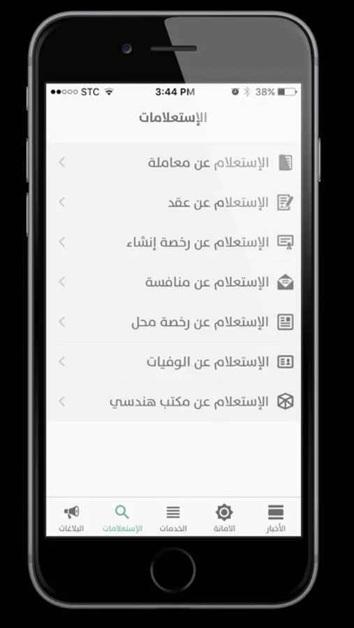 - معاملة، عقد، رخصة انشاء، منافسة، رخصة محل، الوفيات، مكتب هندسي