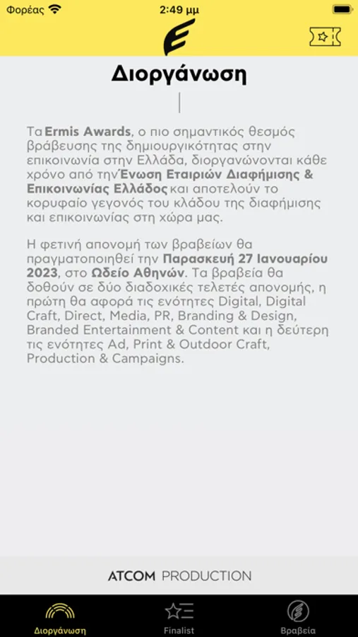 - Get informed about the Ermis Awards Ceremony.