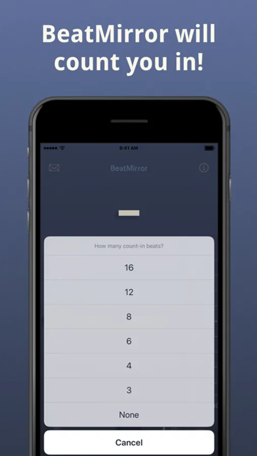 - Custom count-in. BeatMirror gives you an optional count-in before you start playing.