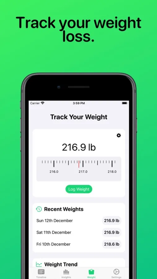 You can also track your weight within the App with our simple weight loss tracker, and understand the correlation between your diet, healthiness and weight loss.