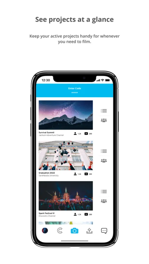 With Cinebody, creating is easy. Simply join a project, follow the shot list, and start filming.