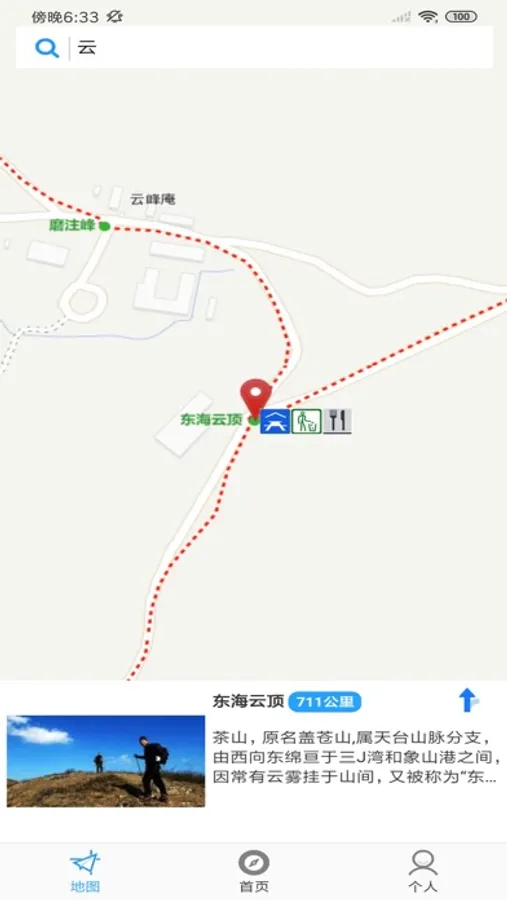 宁海智慧登山移动客户端,是游客的贴身智慧登山管家。它能够为游客提供登山步道的路线、景点、营地、农家乐、酒店、美食等信息,并以此为基础进行线路的推荐、规划以及导航,让游客专心登山游玩,不需为其他事情操心。