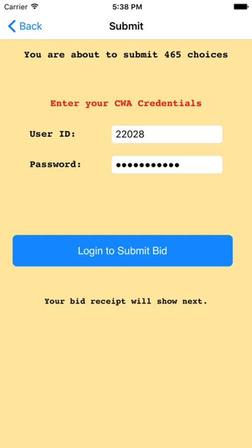The app allows users to set a number of filters to determine the type of flying they would like to do. They then sort each group of lines, and finally submit their bid. If they are in the bid period, they will get back a receipt. If they are NOT in the bid period, they will be able to synchronize their practice bid with WBidMax (an iPad app for more detailed bidding).