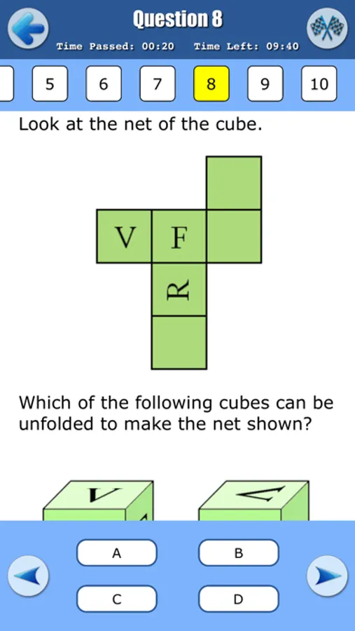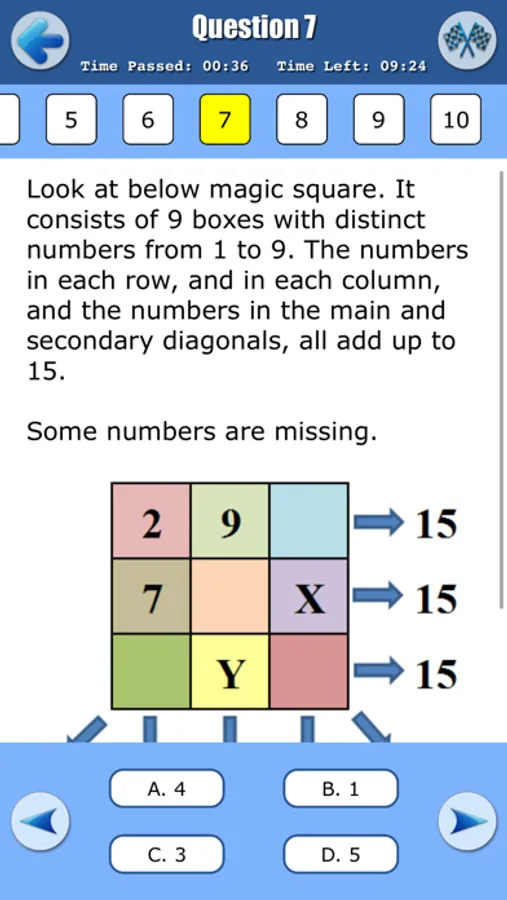 • Option to skip the question, to choose any question in the list and to see which questions are still unanswered.