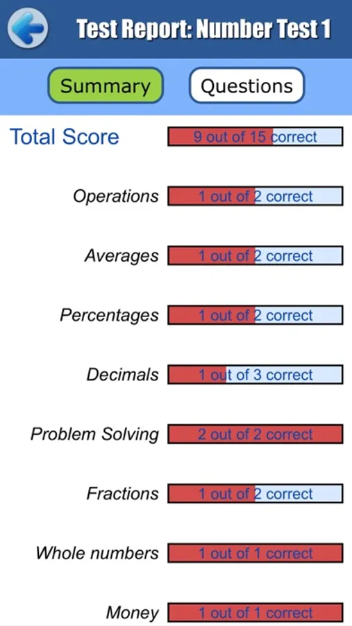 • Detailed progress report. Check the student’s strengths and weaknesses, or review any completed test.