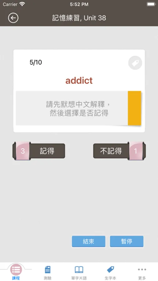 * 可自建使用者單字,並且作記憶和測驗練習。