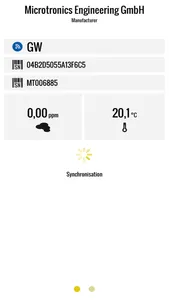 GasBuster connects with all gas sensors within your reach and displays the measured values (gas concentration and temperature) as well as vendor ID and serial number of these sensors. If there is a connection between the gas sensor and your smart phone the connectivity icon turns blue. With the wiping function you can jump between the individual gas sensors back and forth. The dots indicate the amount of gas sensors that are connected. When a gas sensor loses the connection for 15 seconds the screen switches to the next sensor or the home screen will be displayed when no other sensors are connected. GasBuster is compatible with all gas sensors from Microtronics.