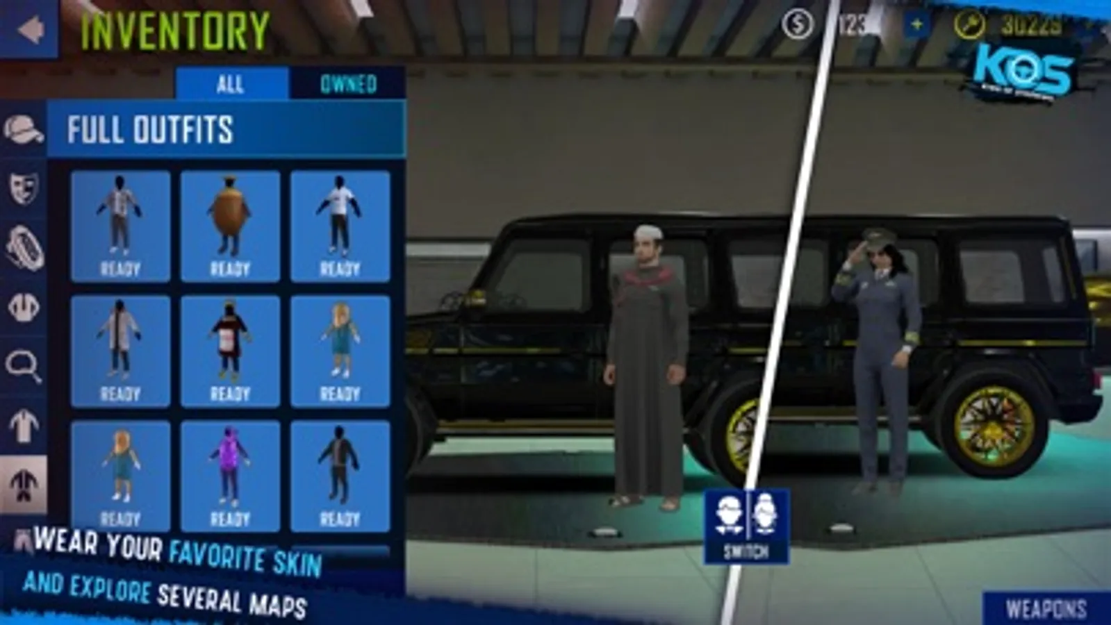 Too many cars for drifters: Sedan like Senata, sport sedan like charger, 4x4 wheel like super, pick up cars, or SUV cars like Yukon or Rolls. In KOS, feel free to upgrade your cars as you like whether to change the color or add some special stickers, show us your skills!