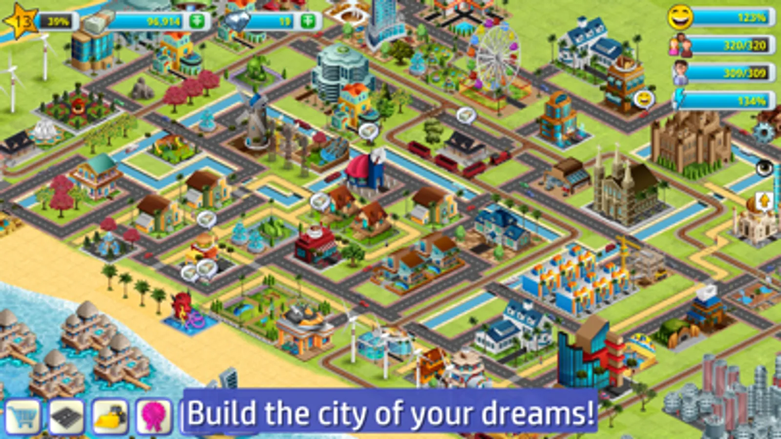 Discover and expand your island, town and beach life in a virtual world full of quests where you have the power to build a lot of different structures with a choice of 100+ unique buildings, like hotels, cinema's, offices, bakeries, restaurants, and even oil platforms on your city island. Start with a tiny city and grow it into a large metropolis. Catch some fish with your boats, make people happy by building parks, beach huts, schools, churches, libraries, museums, plants, and even a nice ferris wheel. It is all about insight and balance in this city town game: happy people attract more citizens, who will need residences and jobs. You have all the power in this epic story: discover what is the best way to be a successful entrepreneur in this fabulous virtual world!