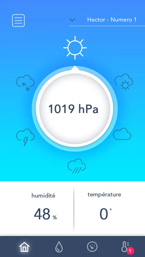 Hector le cube connecté surveille votre environnement : humidité, température, pression atmosphérique, alerte et historique.