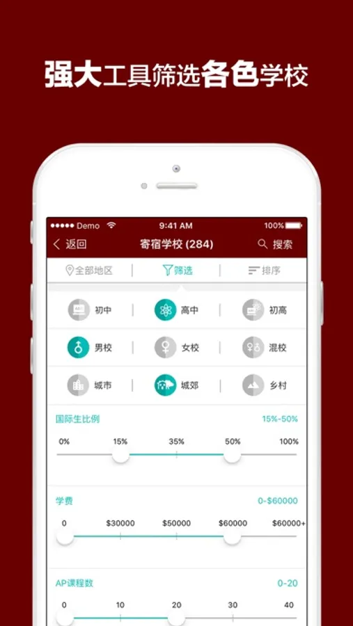 学校筛选——收录全美300所寄宿中学和数千走读中学的详细数据,利用强大的筛选工具助您找到最合适的学校。