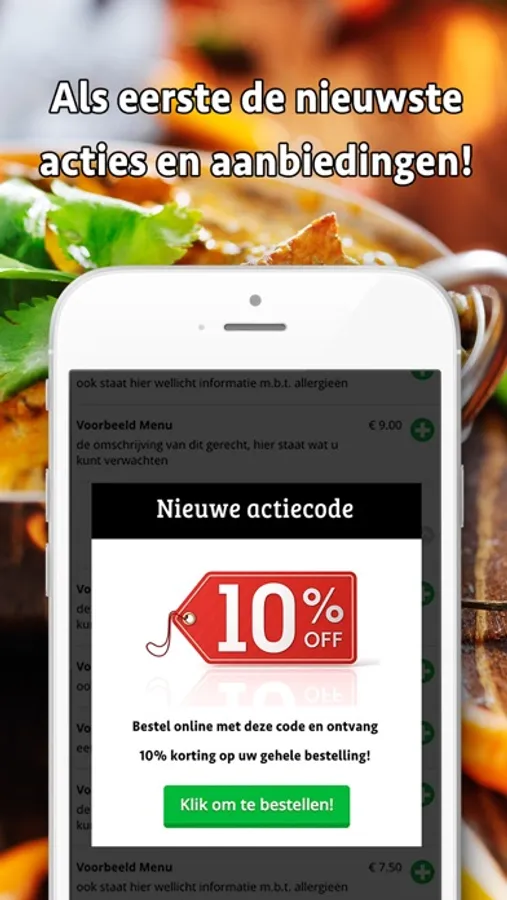 Download onze app en blijf op de hoogte van het laatste nieuws en de nieuwste acties, aanbiedingen en kortingen. Via onze app kunt u onze menukaart bekijken en direct vanaf uw telefoon uw bestelling plaatsen. U kunt via de app ook met iDEAL betalen!