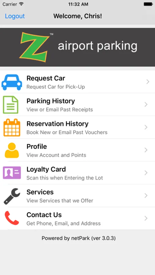Customer portal for access to Z Airport Parking located at Bradley International Airport in Hartford, CT, providing: