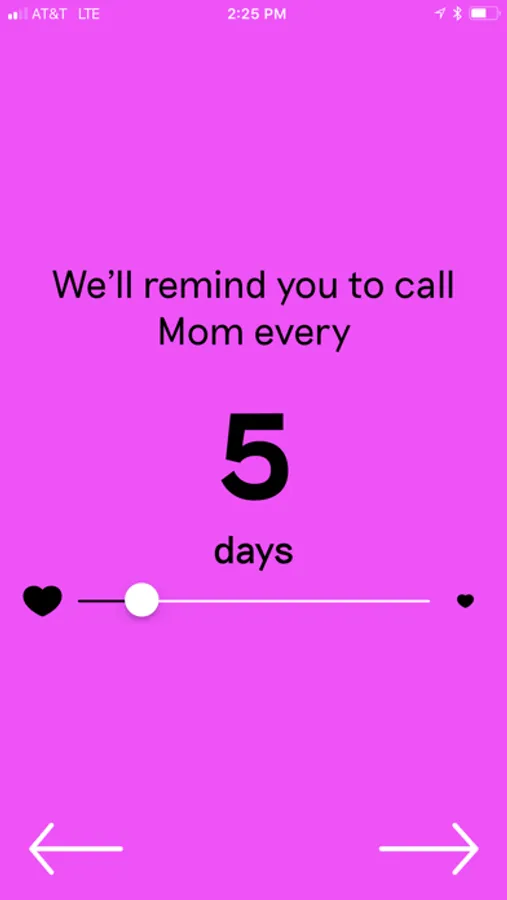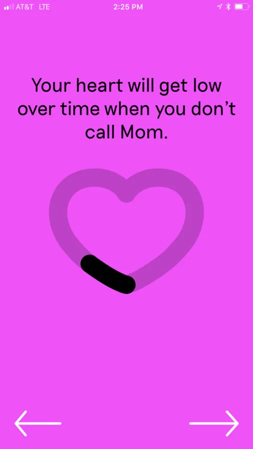 Hey Mom! features a heart meter that gets low when you don't call. Call Mom regularly to keep your heart full!
