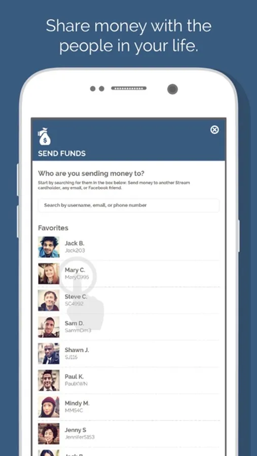 Send money to other Stream Card members easily, quickly, and with no fee. Invite and share with friends by sending money to an email address or mobile phone number.