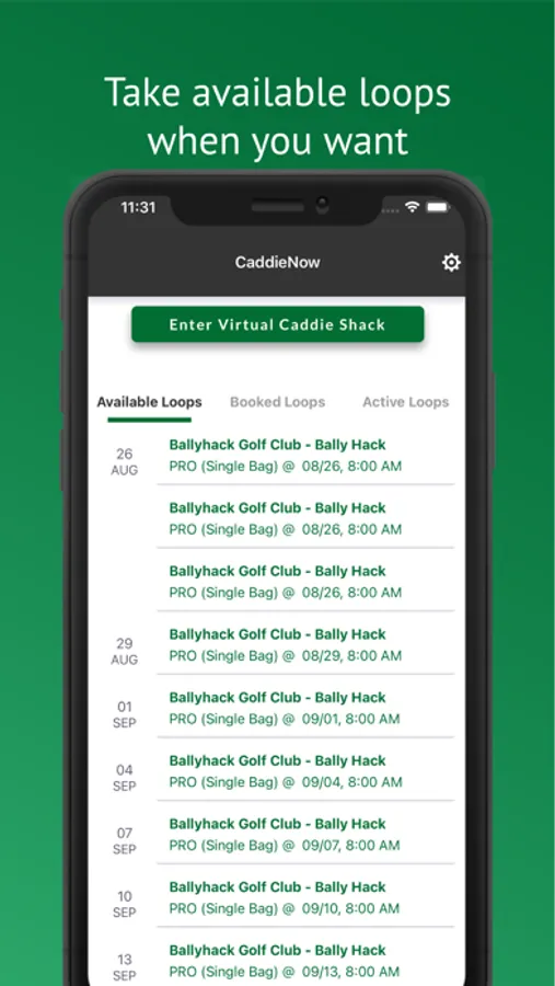 CaddieNow is dedicated to bringing caddies back to the game of golf while preserving and protecting the tradition of caddying. This app allows golfers to create caddie requests at a pre approved list of 50+ Partner courses across the United States. Caddies can book, rate, schedule, communicate, and get paid via the mobile app. Caddies must be pre approved via a 3 step onboarding and certification process before having the ability to pick up "loops" at one of our Partner Courses. Check with your local club to see if they are already on the CaddieNow Platform or tell them to reach out to us at www.caddienow.com