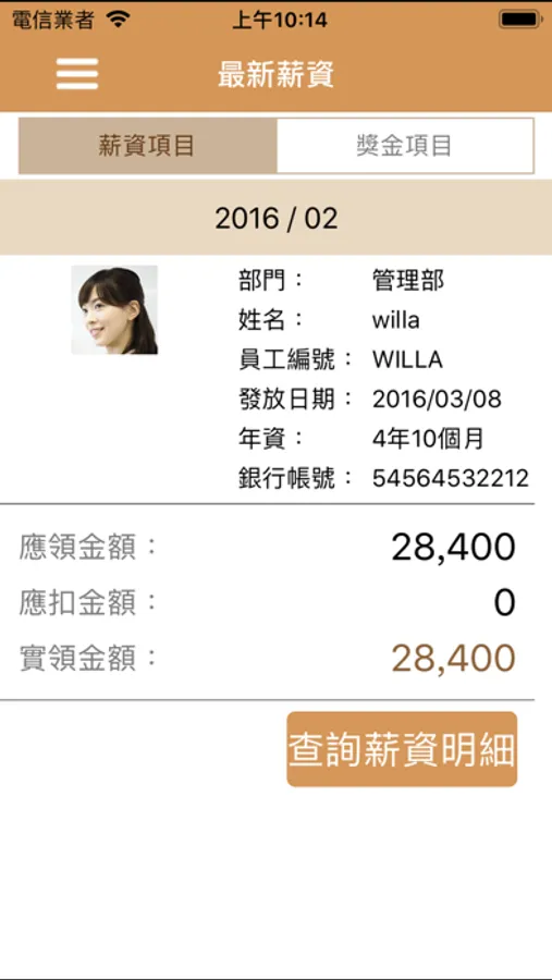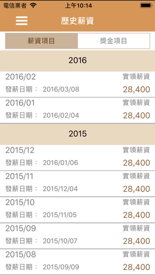 歷史薪資:查詢各月薪資及獎金發放內容。