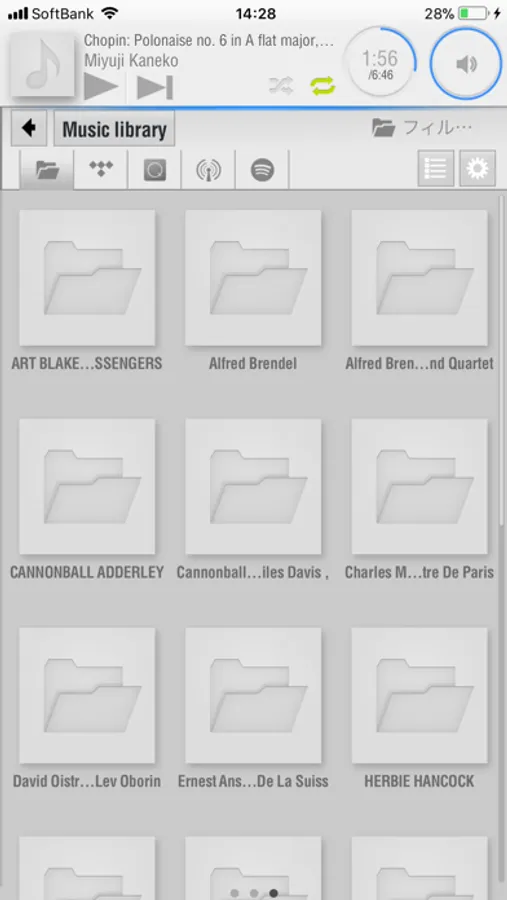 All screens for key operation, playlists, library, etc. are arranged for easy viewing, enabling even users unfamiliar with the app to operate it intuitively and trouble-free.