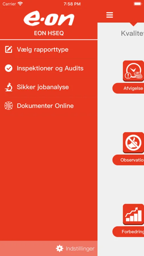 Brug vores app til rapportering af Near Miss, Afvigelser og Forbedringer i E.ON Danmark.