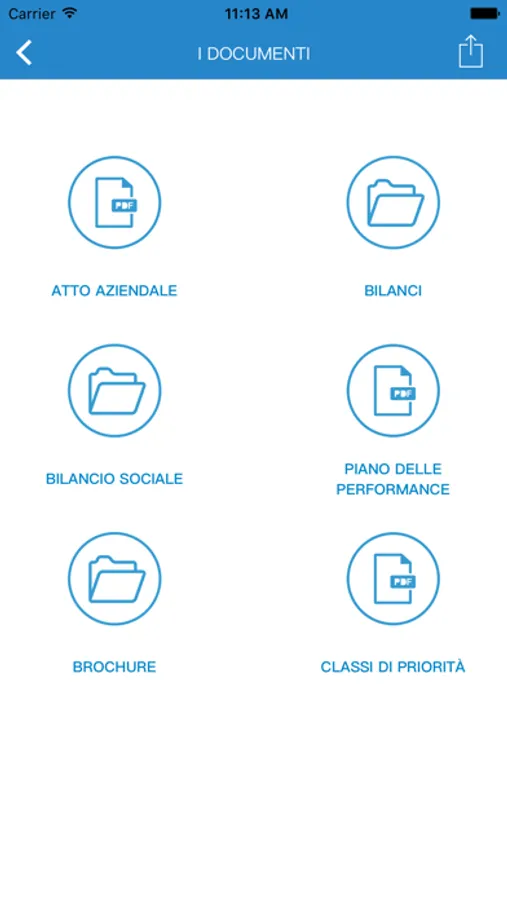 - I documenti: dove è possibile visualizzare e consultare Bilanci, Bilanci Sociali, Atto Aziendale, Classi di priorità e Brochure