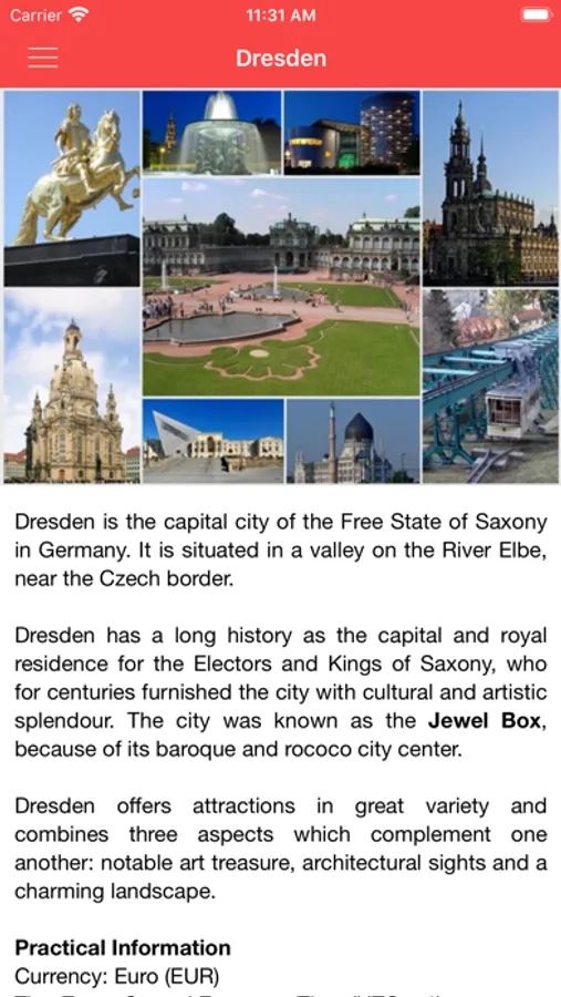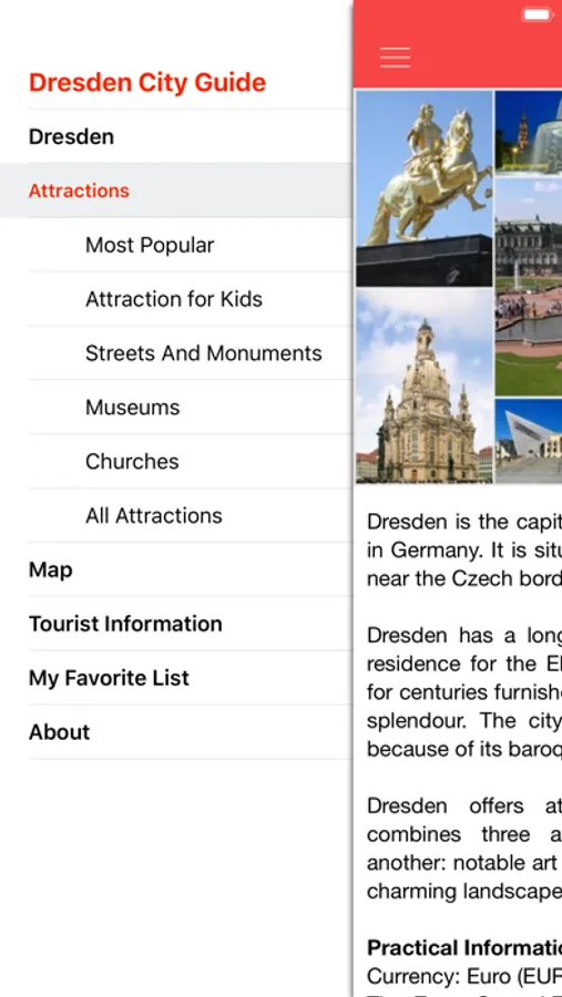 Dresden City Guide, your iOS tourist guide for Dresden. Your own travel guide to glimpse out Dresden's Tourist Spots. Don't spend hours on Internet trying to organize your journey. Dresden City Guide makes your trip easier and memorable by providing information required to have a successful trip.