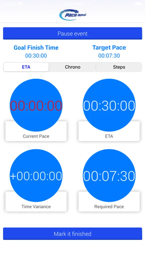 → The Pace App also provides the number of steps. This is accomplished by the user entering in their gait length prior to the event. The Pace App calculates number of steps via GPS-enabled distance measurement. This results in a much more accurate calculation of steps than other pedometer-based devices.