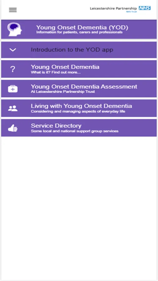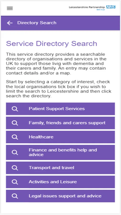 Ideally, this app can be presented to patient and carers at the time of diagnosis so that in their own time, patient and family members can use guidance to help them to manage all aspects of their life and more importantly signpost them to an array of services and organisations that provide specialist support and information, locally, regionally and nationally. Signposting within the service directory section is categorised, such as; finances, transport, employment, living well, relationships, etc. with contact details for these resources and links to websites such as Alzheimer’s society and YoungDementia UK.
