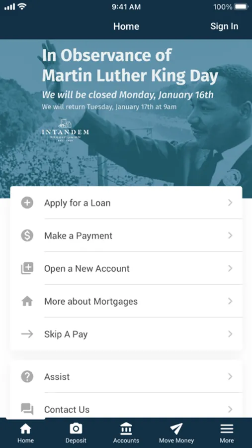 Intandem Credit Unionn Mobile provides members convenient access to our website, mobile check deposit, mobile banking, branch and contact information.