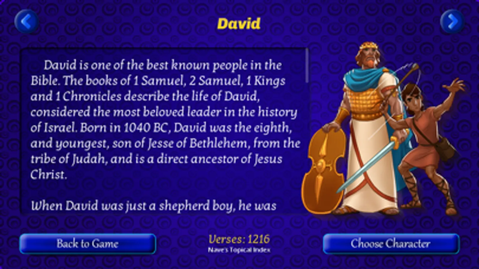 • Play The Bible through the verses containing your favorite characters in more than 31,000 Bible verses