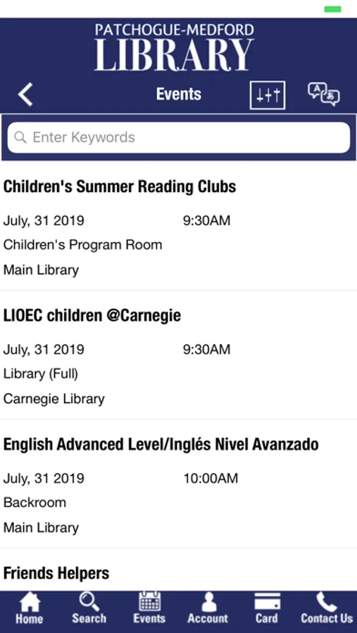 The Patchogue-Medford Library is now available as an app for your tablet or smartphone. This app is the quickest, easiest way to checkout your materials - no wallet necessary.