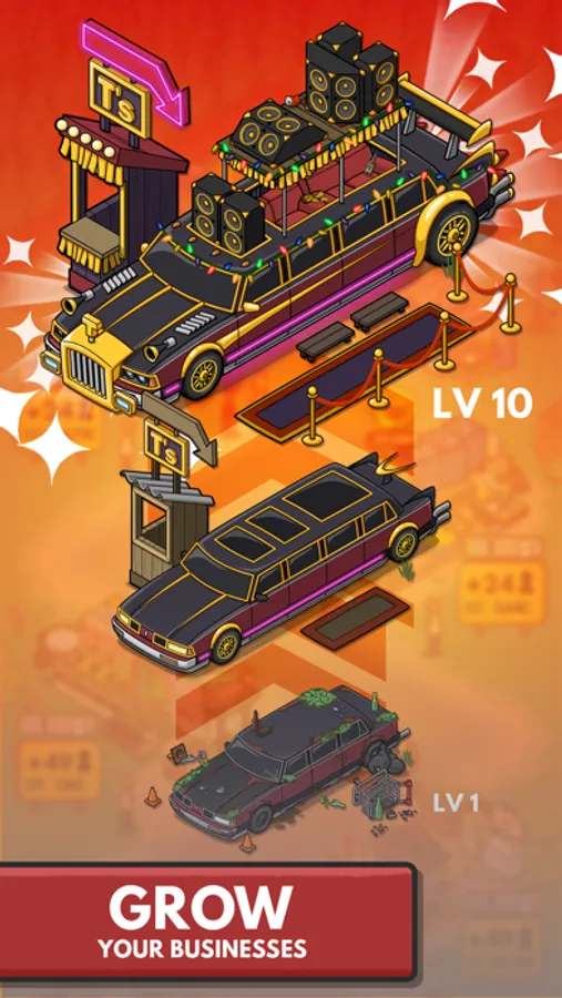 •UPGRADE! - Make profit by upgrading businesses and earning customers