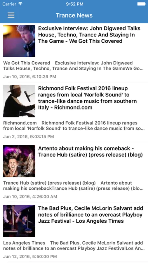 Trance Music & EDM News app, crafted by fans of the music genre, provides the latest news in the Trance & Electronic Dance Music scene. You can easily access updates and news from the top Trance DJ's and dance events around the globe, plus listen to the hottest new progressive trance, euphoric and vocal trance songs by talented artists. There is also a section dedicated to the latest happenings from the top trance DJ's of the world, including Armin Van Buuren, W&W, Ummet Ozcan, PVD, Cosmic Gate, Ferry, and more!