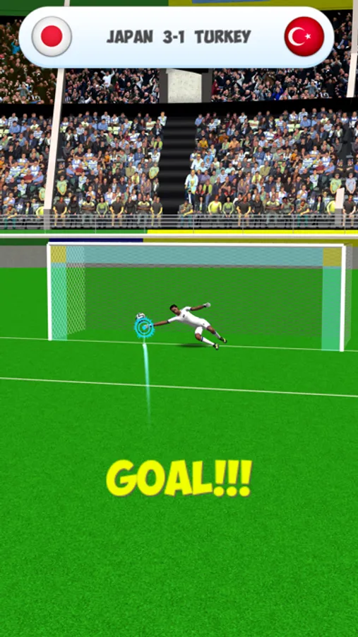 Swipe your finger to curve the ball and shoot. When you are goalkeeper, move left or right for save the ball.