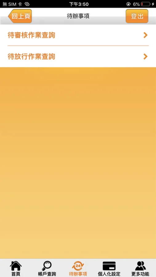二、待辦事項:提供本行客戶待審核作業查詢與待放行作業查詢等服務。