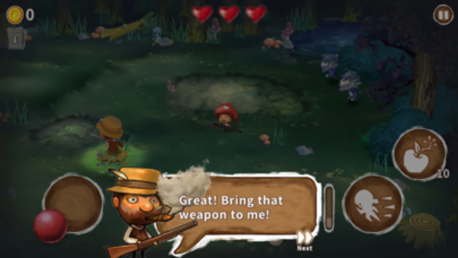 Fairy tale comic art style in a run and dodge survival game! Tons of wolves with a variety of attacks will challenge your reflex and ability to keep Red safe! Clever and smart usage of items along with the help of the hunter and other forest friends will help Red fend off the wolves. Run and keep on running to keep Red safe!