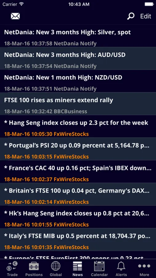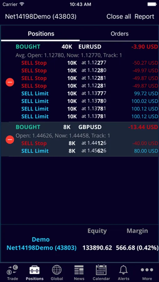 • Multiple order types; Market, Limit, Stop, OCO and Trailing Stops