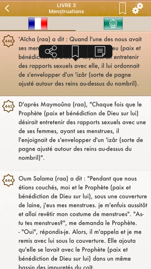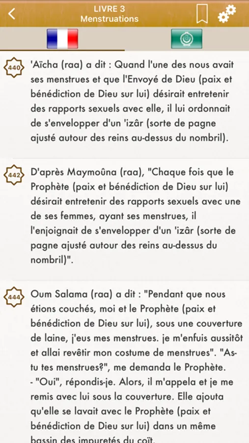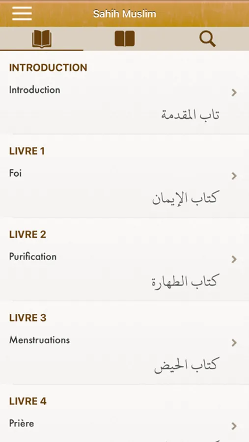 - 55 thématiques condensées et réparties sur plus de 1700 Hadiths en Français et + 5500 hadiths en Arabe