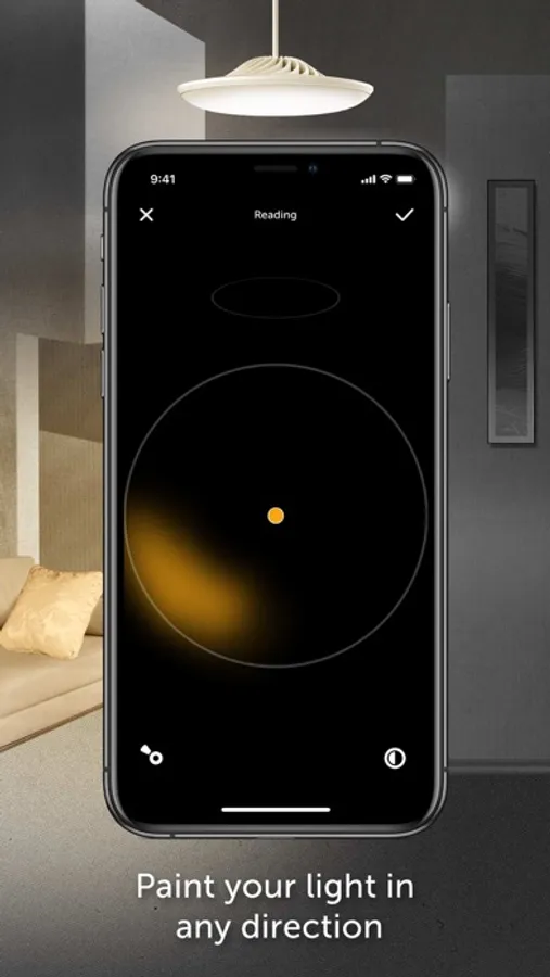 Independently control downlight and uplight on your Luke Roberts smart lamp. Simply pick a light color and paint in the desired direction to illuminate that part of your room.
