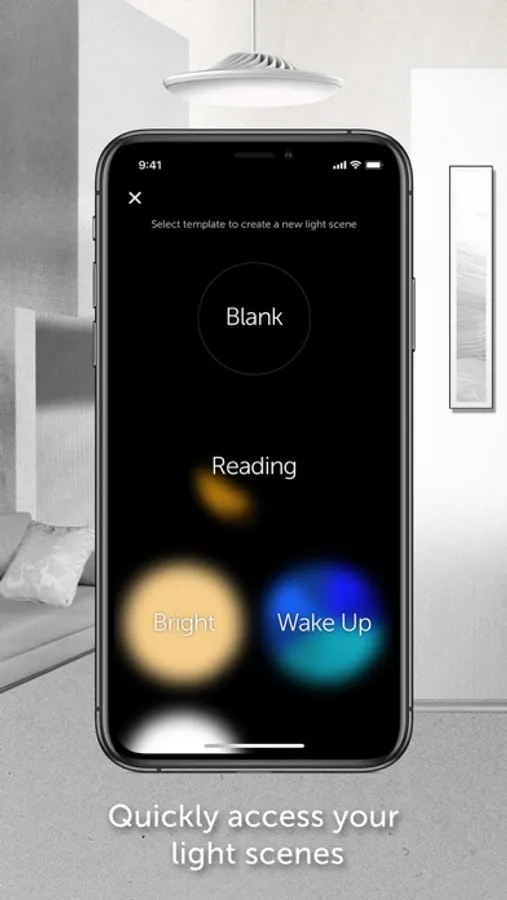 Choose from a number of preset light scenes, customize them or simply create your own and save them in the app.