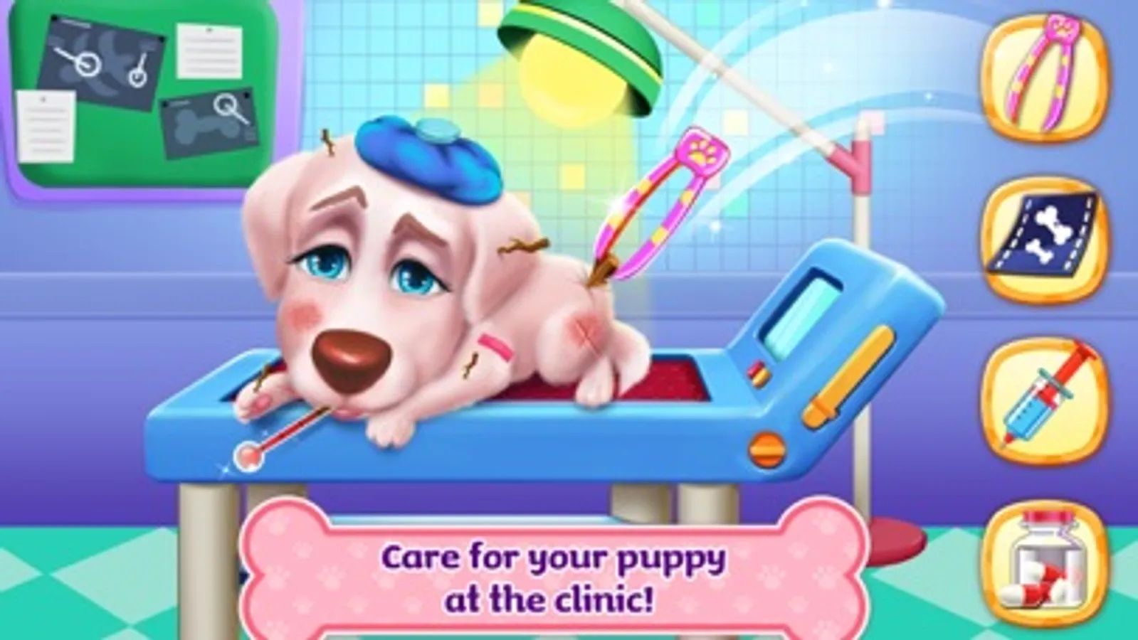 > Care for your puppy when she’s sick. Take her to the doctor’s clinic!