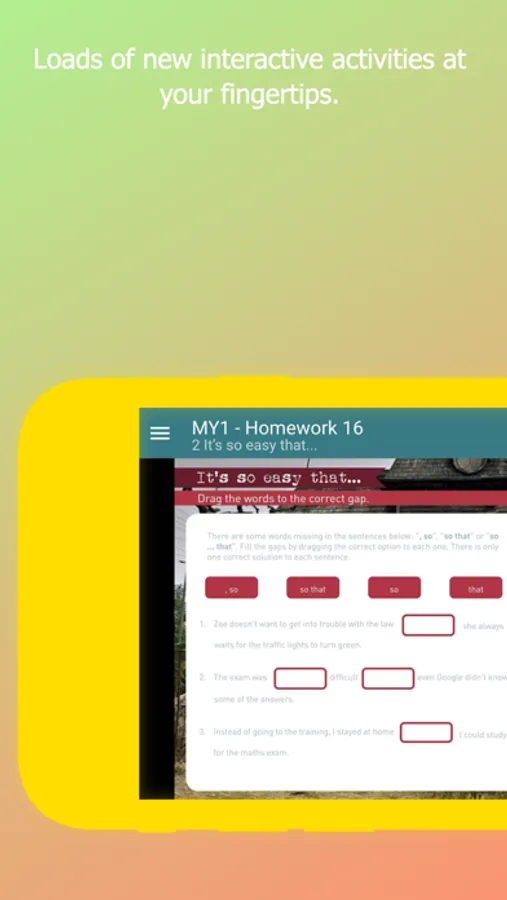 If you are a parent or student of Tweens & Teens courses at a Kids&Us language school, download the app to access the online homework assignments from your tablet or smartphone. The app also shows the marks for completed assignments.