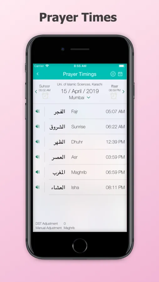 • Automatic DST settings for Prayer Timings